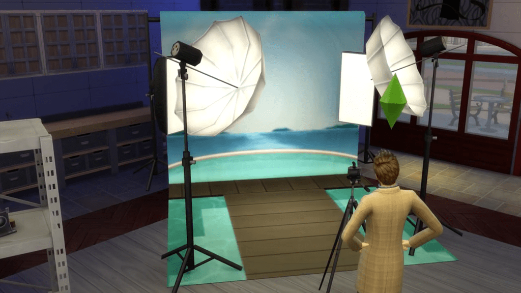 Sims can take up photography and create their own studio. Here you can snap photos of Sims against a selection of backdrops and in different poses. The size and orientation of a photo can be adjusted, and various filters can be applied.